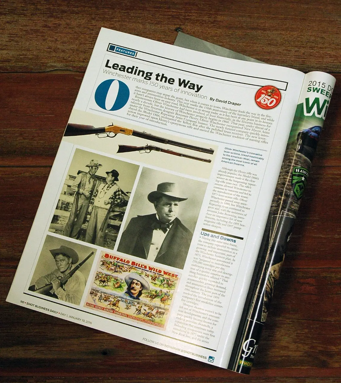 On the first day of the 2016 SHOT Show in Las Vegas, attendees were treated to great article in SHOT Daily by Dave Draper on the 150th anniversary of the Winchester brand entitled “Leading the Way.”