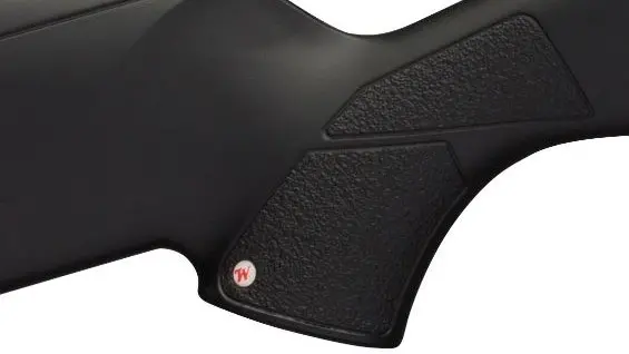 ADVANCED POLYMER STOCK. The XPR rifle’s stock comes in a choice of subdued finishes with textured panels on the fore-end and pistol grip to improve grip in cold, wet weather. The fore-end has rounded edges plus a slightly flattened bottom profile for comfortable shooting from any position. This flattened profile also optimizes stability when firing off sandbags or a rest.