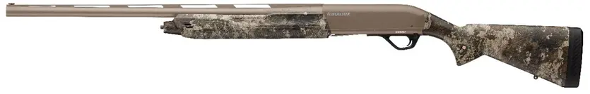 True Timber Strata camo, Cerakote FDE finish on receiver and barrel, Invector-Plus choke tubes, TRUGLO fiber-optic sight, larger cocking handle, larger bolt release